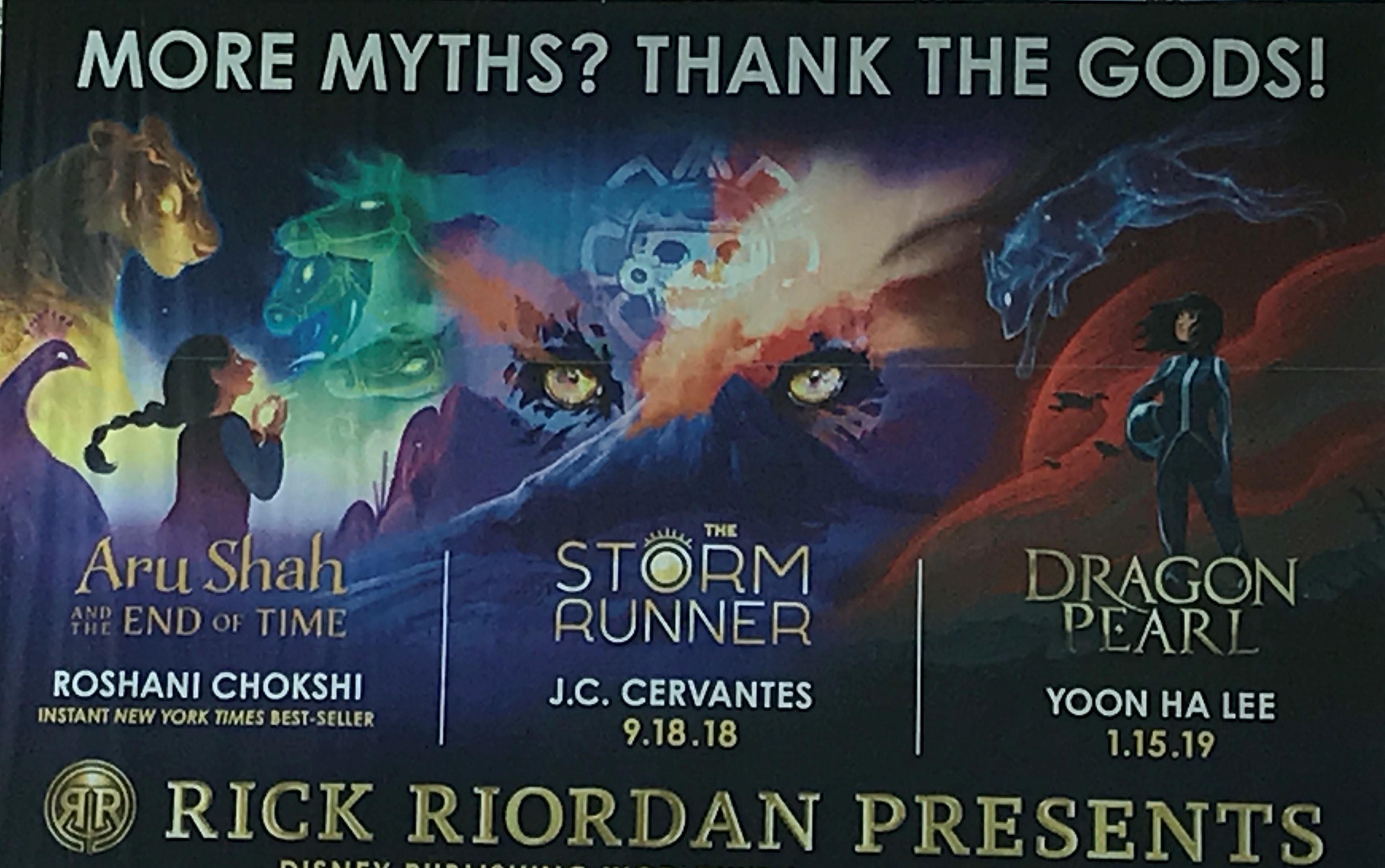 According to the authors the only real guideline is that any story idea pitched to the imprint must be some kind of mythological retelling. The pitches all get screened by Rick Riordan and his editor, and if any story speaks to them they tell the writer to go forth and write it. Roshani and Jennifer said that while they worked closely with Rick’s editor on their books, Rick Riordan himself was very hands-off (you know until he retweets their new book’s release to his millions of followers).