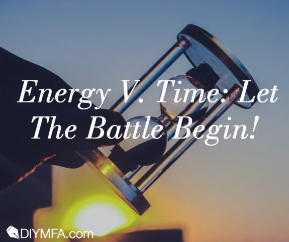 DIY MFA readers, where do you land on energy vs. time? Do you think one is more important than the other? Here’s the litmus test: if you were given the choice to sleep in on a low-energy day, but it would mean missing a writing session, would you take it?