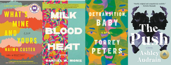 In addition to the use of clean, bold fonts, another trend that can add distinctiveness is an abstract art background. This use of shapes and colors in unique combinations can create a one-of-a-kind look. At first glance, these designs may appear to be pure abstraction. However, as the cover draws you in, the reader starts to observe recognizable objects within the subtle images. For instance, notice the human eye shape in Detransition, Baby, and facial profiles in the Rorshach-like inkblot in The Push. These details add visual interest that can lead the reader to continue to study the design.