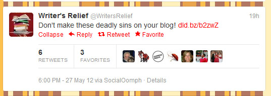 Tons of great links to writing resources and tips on writing craft. Recent Tweet:
