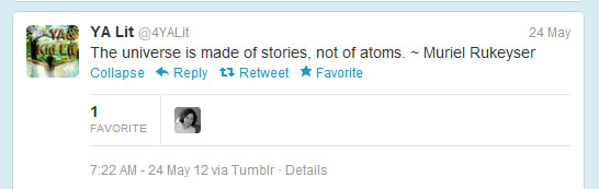 Quotes from writers and retweeted articles from writers’ blogs. Recent tweet: