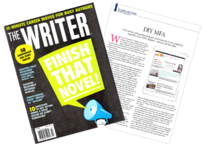 DIY MFA was featured in Jeff Tamarkin’s “Class Action” column in The Writer magazine. This column regularly spotlights innovative writing programs, courses, and residencies, like the Clarion Science Fiction and Fantasy Writer’s Workshop and the Highlights Foundation workshops. It’s an honor to be featured to appear in the same column that has written up such high-level programs. Read the online article here.