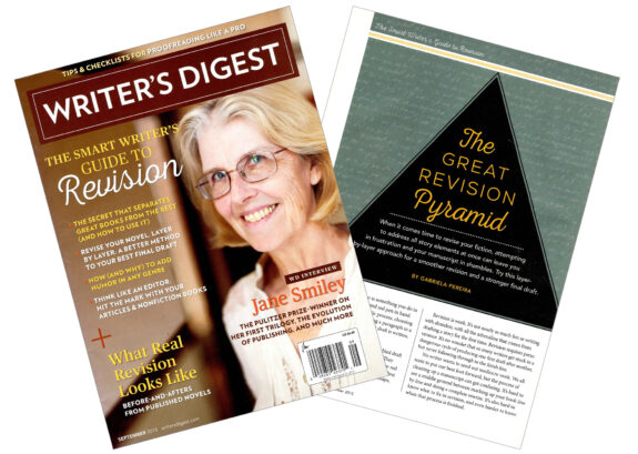 The Great Revision Pyramid” (Writer’s Digest, September 2015) has been reprinted in Skriva (November/December 2015), the Writer’s Digest Yearbook: Writing Basics (Spring 2016), and The Complete Handbook of Novel Writing, 3rd Edition (Writer’s Digest Books, 2016).