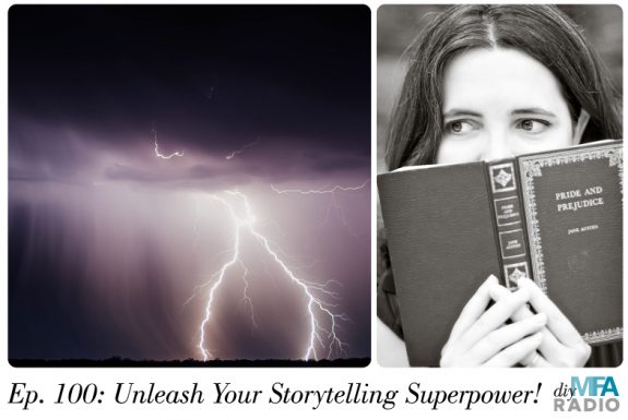 Head on over and take the quiz if you haven’t already. When you finish the quiz, you’ll be prompted to sign up to get a Storytelling Superpower cheat sheet. This Storytelling Superpower concept is one I developed to help launch the DIY MFA book, but It’s also connected to the subject of today’s podcast episode.