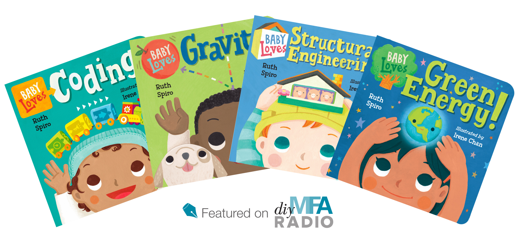 Ruth’s popular Baby Loves Science board book series already includes Baby Loves Aerospace Engineering!, Baby Loves Thermodynamics!, Baby Loves Quarks!, and Baby Loves Quantum Physics! And the latest of these wonderful board books to be added to the series include Baby Loves Coding!, Baby Loves Green Energy!, Baby Loves Structural Engineering! and Baby Loves Gravity! which are all available now from Charlesbridge. The series has been featured in The Los Angeles Times, Popular Science and Working Mother, and is illustrated by Irene Chan.