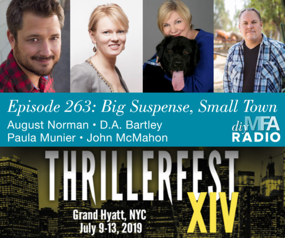 Hey there word nerds! Today is one of my absolute favorite episodes of the year because it’s our annual ThrillerFest Debut Authors panel and I am so delighted to have August Norman, D.A. Bartley, Paula Munier, and John McMahon on the show.