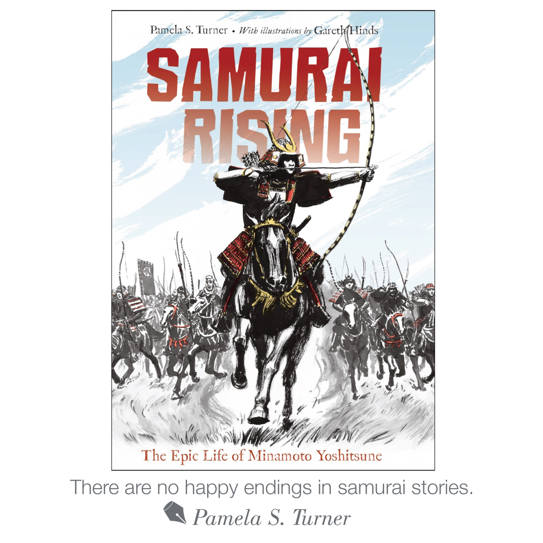 In this interview I talk with writer Pamela S. Turner and illustrator Gareth Hinds about their book Samurai Rising: The Epic Life of Minamoto Yoshitsune. Pam has written historical fiction, biography and science for young readers and has won numerous awards. Gareth is the creator of the critically-acclaimed graphic novels based on literary classics like Beowulf, King Lear, Romeo and Juliet, and Macbeth. Together they make for a powerhouse team in bringing to life the amazing story of legendary samurai: Minamoto Yoshitsune.