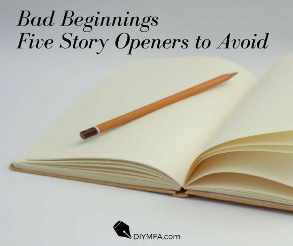 In the “Instant Backstory” beginning, usually there is a line or two about what is going on in the present, in the action of the piece, and then we’re thrust into the protagonist’s backstory. And not their immediate backstory, either—like how they got into this exact situation—but further back, into parts of their life that can’t possibly be relevant at the moment, like their childhood. I’m not necessarily opposed to backstory—certainly I’ve seen it done well—but it can just as easily deflate tension as build it, and if used too early, it will lessen the stakes raised by your hook or opening lines. As a general rule, I want to be invested in the main story and the present moment of the book before I’m brought someplace new.