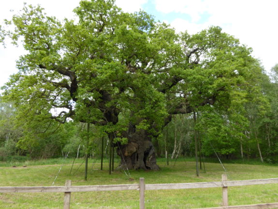 What one sees today is far from what one saw when the Major Oak was just a sapling—or when Henry II went hunting there—or when it was known as the Cockpen Tree because 18th-century cock fighters penned their birds inside its hollow trunk before a fight—or when a hotel was built in nearby Edwinstowe to house Victorian tourists come to see the tree. But what one can see is enough to allow our imaginations and what’s known about the history of the place to truly bring that past alive for our readers.
