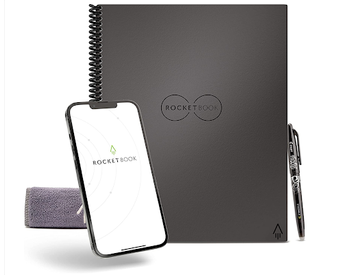 You’ve probably heard of Rocketbook by now. They make reusable notebooks that are, in functionality, nothing less than sheer sorcery. How do they work? You write in the notebook, take a photo with your smartphone, check a box on the page and your written document is sent to one of the many locations you can specify (i.e., email, Dropbox, Evernote, One Drive, etc.). It should be noted that you can designate several different destinations per notebook. When you run out of pages, you simply wipe clean with a damp cloth and you’re good to begin again.