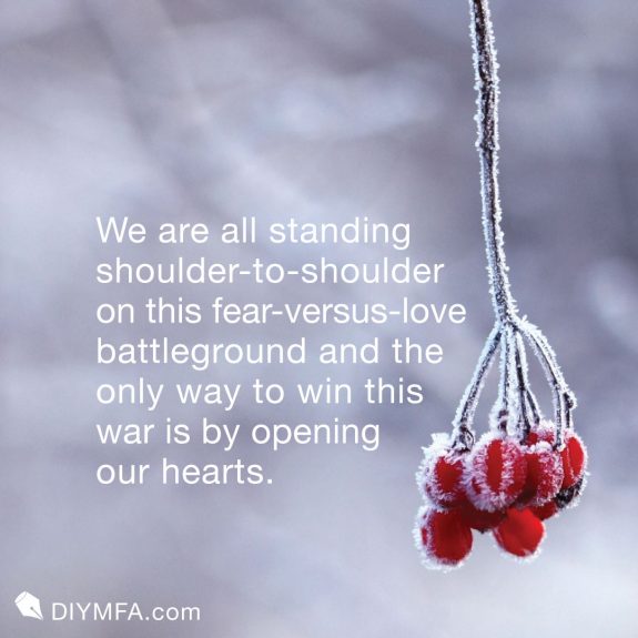 There’s a lot of fear in the world right now. We might want to rage against it or bury our head in the sand, but like it or not we are all standing shoulder-to-shoulder on this fear-versus-love battleground. And as I’ve learned in my own personal battle, the only way to win this war and that is by opening our hearts.