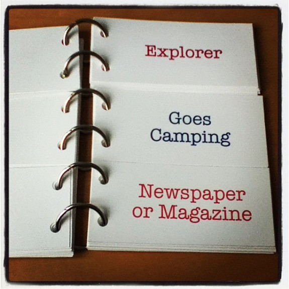 I tested both the flip-book version and the deck of cards version with friends in my critique groups and students in the workshops I teach. They loved it, but I still wasn’t satisfied. I wanted something portable, something that I could carry in my pocket and access anytime I wanted, but that also had millions of possible combinations. Oh, and I also wanted to share this idea through DIY MFA.